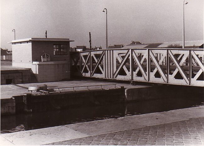 Formaat : 18 x 13 cm. - Op de Oosteroever van de haven aan de toegang tot het Visserijdok wordt een sluisdeur verwijderd (of geplaatst).