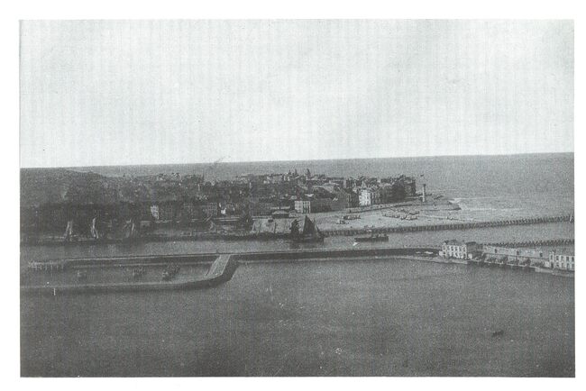 Walschaerts. - Ostende - Panorama pris du Phare. - De havengeul ezien vanaf de vuurtoren op de Oosteroever, het militair domein Halve Maan en de Leopoldsluis.