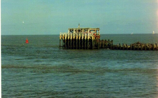 Tropic T 281. - We zien "'t koptje van 't hoofd", of het einde van het Weststakestel, het café-paviljoen en het ijzeren torentje met mistbel . De SeaCat "Rapide" van Hoverspeed Oostende-Dover…
