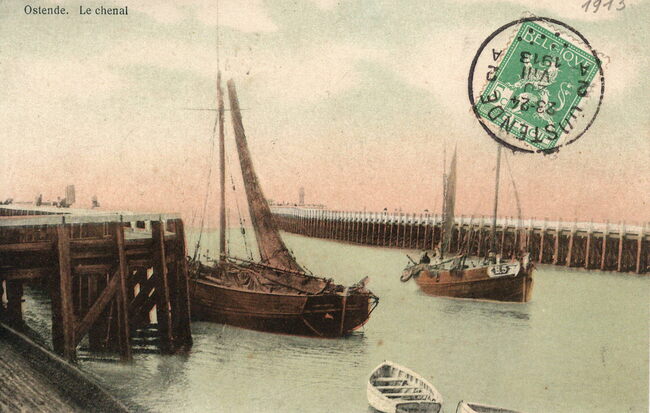 Bijgekleurde kaart. - Ostende Le Chenal