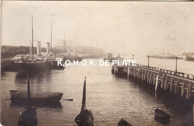 JC. - Pakketboten van de Oostende Dover lijn gemeerd nabij de werkhuizen van het Zeewezen op de oosteroever.