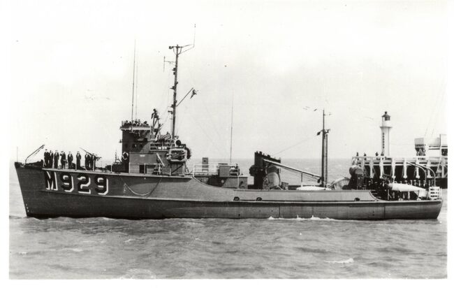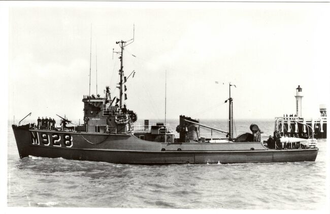 Photo Luc. - De mijnenveger werd gebouwd bij Mercantile Marine Yd. te Kruibeke in de periode 1958 - 1959. Op de achtergrond, het Ooststaketsel