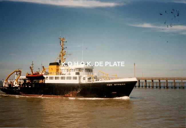 Formaat : 9 x 13 cm. - Op de eerste foto zien we het hydrografisch vaartuig "Ter Streep" in de havengeul. Op de achtergrond het Ooststaketsel. Op de tweede foto zien we het hydrografisch vaartuig "Ter…