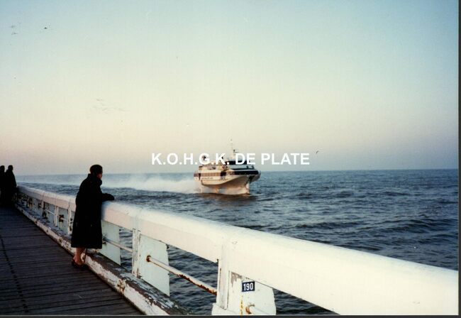 Foto : 8,5 x 12,5 cm. - Jetfoil in de havengeul met op de voorgrond het Weststaketsel