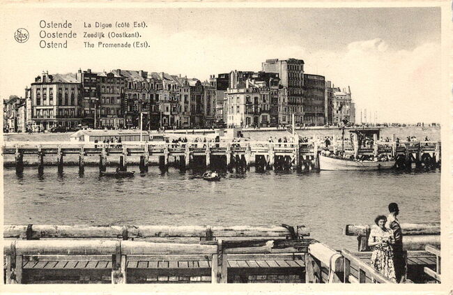 Nels. Ern. Thill, Bruxelles, N° 35. Ostende - La Digue (côté Est). Oostende - Zeedijk (Oostkant). Ostend - The Promenade (Est). - Zicht van de havengeul vanaf het Ooststaketsel. Het Weststaketsel met ernaast het Klein…