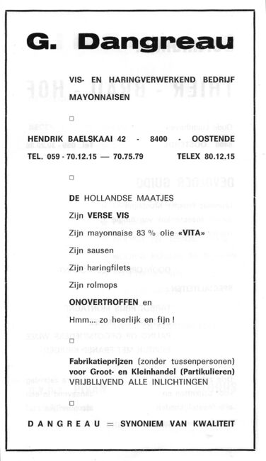 De haringinleggerij en mayonaisefabriek Dangreau werd gesticht in 1947 door Alfred Dangreau. Oorspronkelijk stond het bedrijf op de oude kaai. Naderhand werd het tengevolge van de urbanisatie, overgeplaatst naar de…
