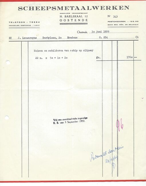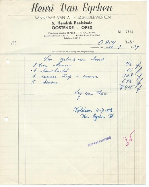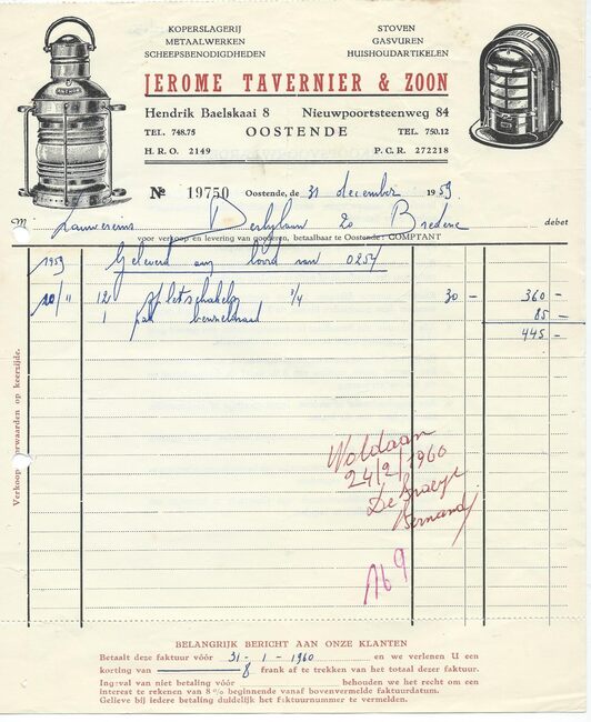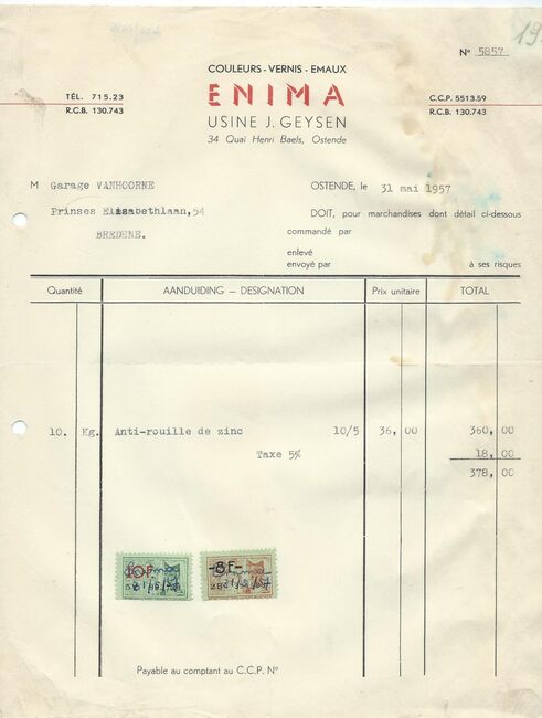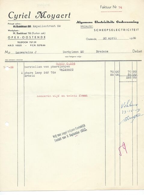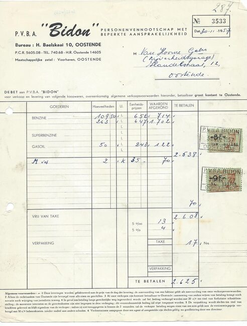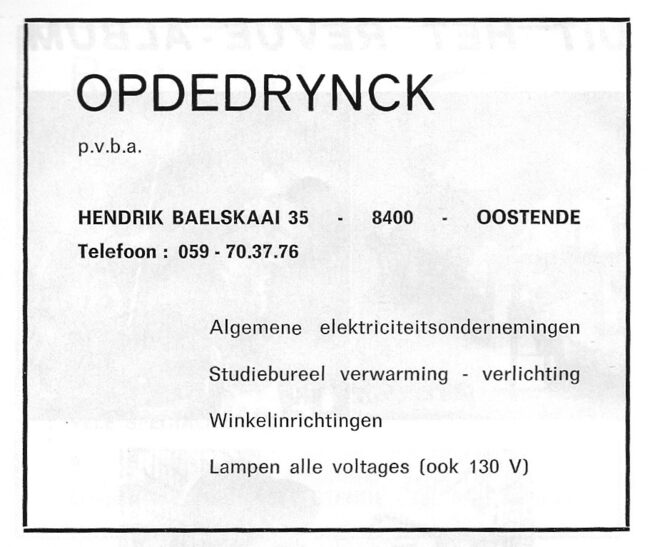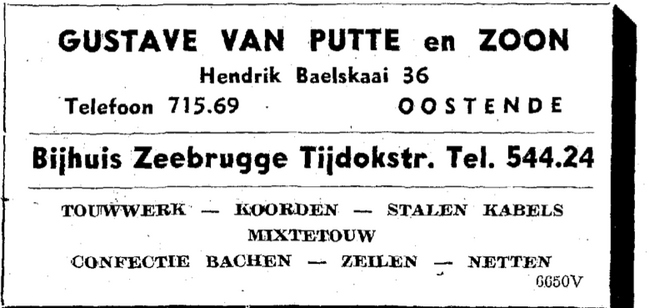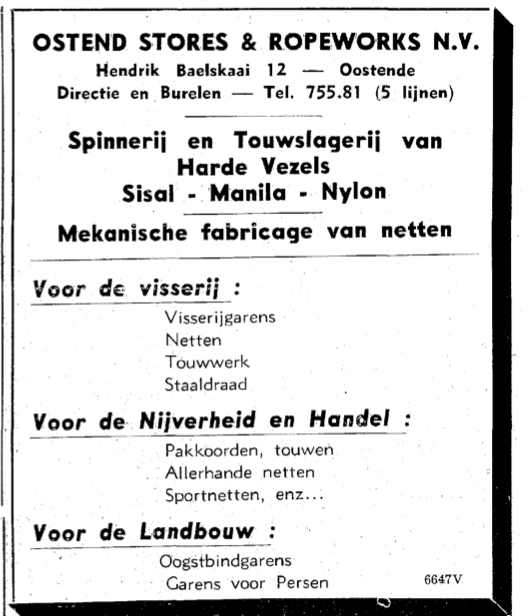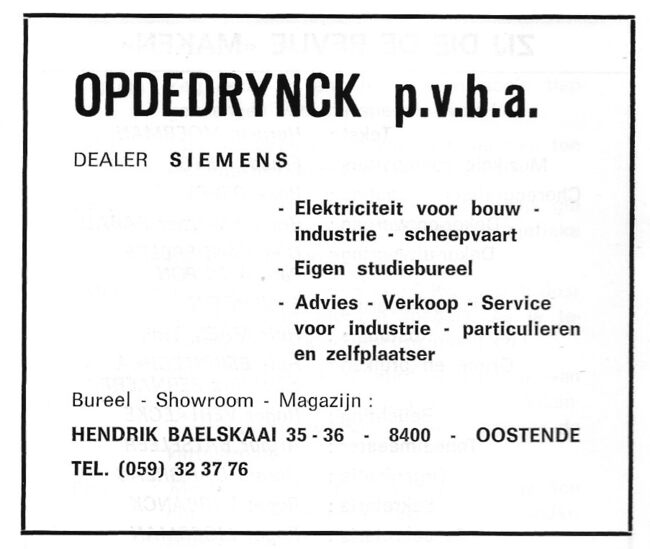 Afd. Tractor Service. - Wisselstukken voor bulldozers, herstellingen bulldozers, kranen , loco's, dieselmotoren. - Huis gesticht in 1783. - Maatschappelijke zetel : Kapellestraat 76, Oostende