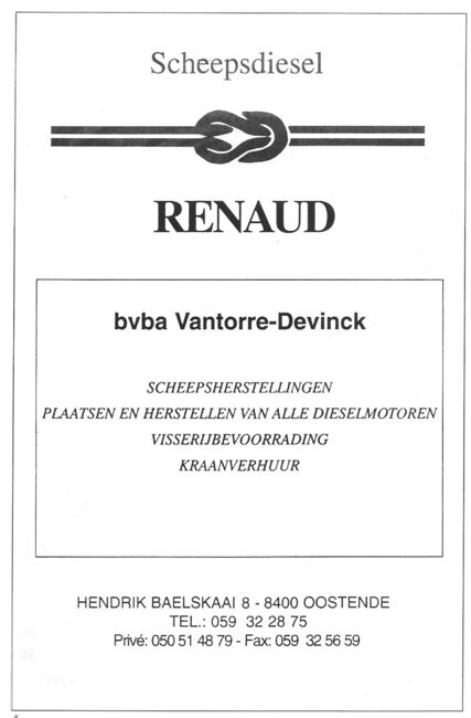 Représentants généraux des moteurs marins et groupes de bord diesel Deutz et Strüver. - Maatschappelijke zetel : Kapellestraat 76, Oostende