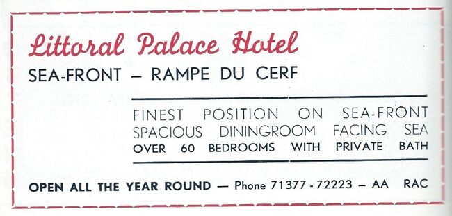 Het "Littoral Palace Hôtel" gevestigd op de hoek van de Zeedijk en de Hertstraat. Later gekocht door "Les Heures Claires". Onlangs afgebroken. (Omer Vilain)