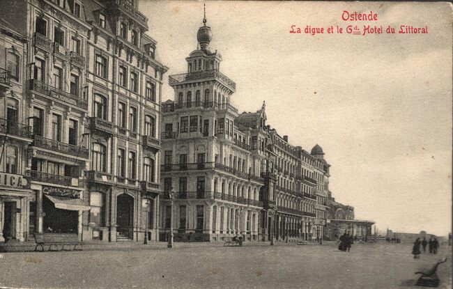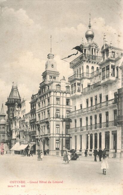 Editeur Albert Sugg. à Gand. Série 7, N.103. Ostende - Grand Hôtel du Littoral. - Het hotel was gelegen op de hoek met de Hertstraat. Op de andere hoek, "Hotel Alexandra"