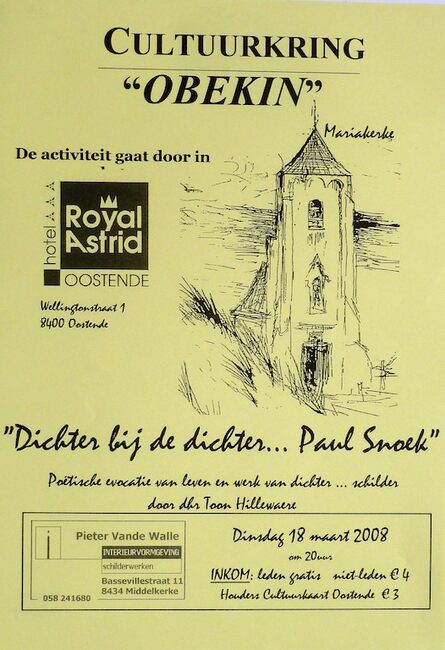 Affiche : Cultuurkring Obekin. Dichter bij de dichter Paul Snoek. Hotel Royal Astrid. 18/03/2008.