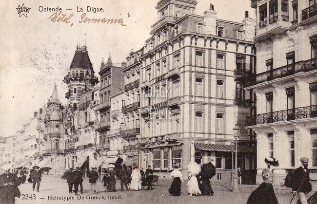 Editeur Albert Sugg. à Gand. Série 7, N.103. Ostende - Grand Hôtel du Littoral. - Het hotel was gelegen op de hoek met de Hertstraat. Op de andere hoek, "Hotel Alexandra"