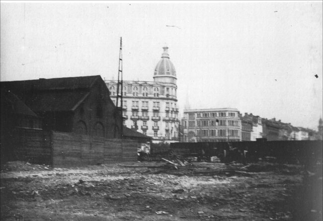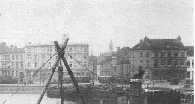 Foto : 18 x 13 cm. - De Werfkaai. Op de achtergrond, links, het "Panorama van den Ijzer" en rechts, het "Hotel des Thermes".