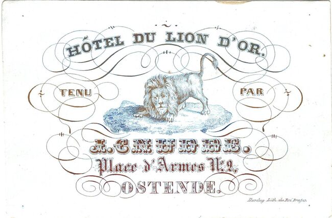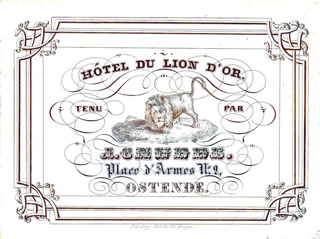 Formaat : 7,8 x 11,7 cm. - Hôtel du Lion d'Or tenu par J. Cnudde Place - d'Armes N° 2 - Ostende.