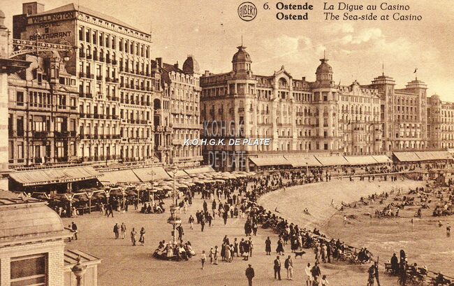 Editeur V.G. [Victor Grégoire], 42, Avenue du Midi, Bruxelles. - Ostende - Les grands Hotels "Continental", "Océan" et "De la plage". - Vanaf de Berlijnstraat, omstreeks 1919 gewijzigd in…
