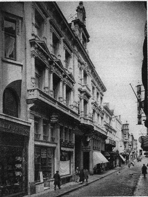 Postkaart Foto Antony, nr. 100831-6. - Oostende - Vlaanderenstraat. - Op de hoek met de Langestraat, de patisserie-tearoom-ijssalon O. Acke (nr. 50), wat verder het "Hotel Léopold II" (nr. 42)