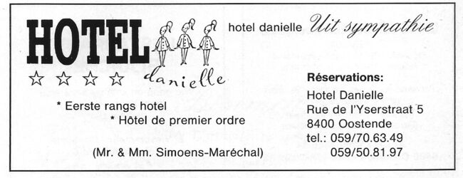 Formaat :15 x 10 cm. - Het hotel was gelegen in de Vindictivelaan en sloot na 36 jaar haar deuren in 1987. De uitbater was de heer Lionel Maertens van touroperator Transeurope