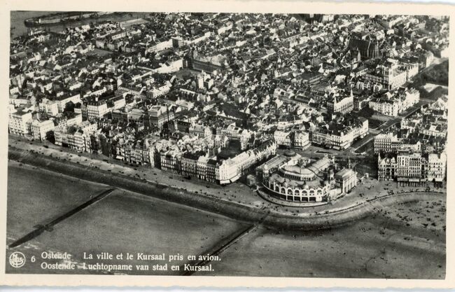 Nels/Thill 6. - Ostende - La ville et le Kursaal pris en avion. Oostende - Luchtopname van stad en Kursaal. - Luchtfoto, met centraal, het Groot Strand en het derde Kursaal langs de Zeedijk en zijn grote hotels. Met zicht…