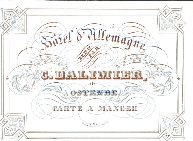 Formaat : 11,1 x 15,5 cm. - Hôtel d'Allemagne tenu par C. Dalimier à Ostende. Carte à manger.