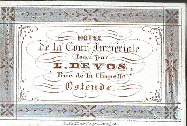 Formaat : 9,1 x 13,1 cm. - E.De Vos - Hotel de la cour Imperiale - Rue de la Chapelle - Ostende.