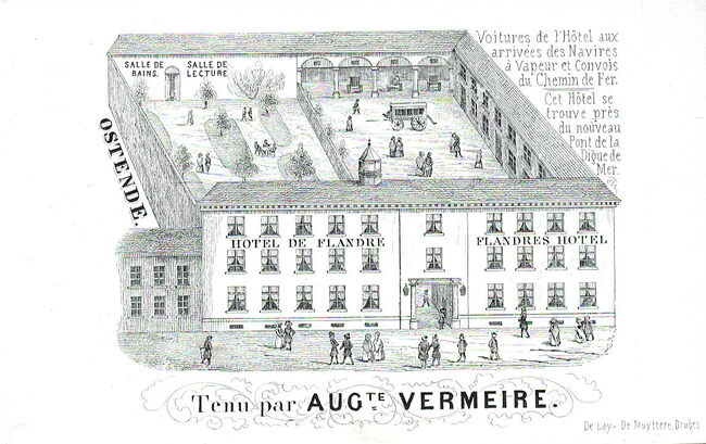 Cet hotel nouvellement décoré et meublé situé dans le plus beau quartier de la Ville pres la grand place et à proximité de la dique de mer, offre à messieurs les Voyageurs tous les avantages désirables. Table d'Hôte…