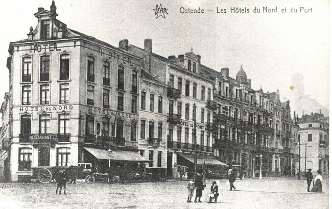 Afdruk van postkaart Star, formaat : 9 x 14 cm. - Ostende - Les Hôtels du Nord et du Port. - De Zeedijk, met op de hoek met de Langestraat, Hotel du Nord en wat verder Hotel du Port