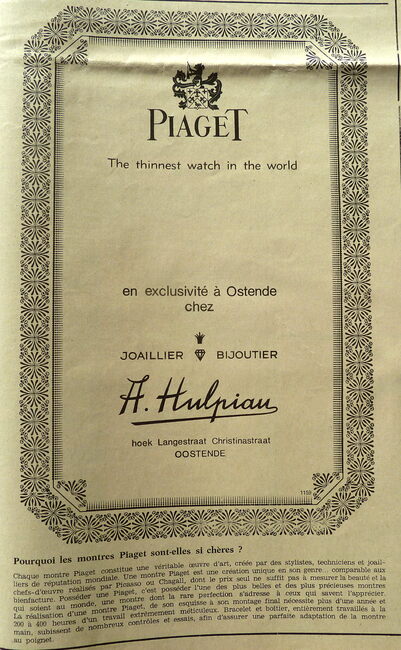 Formaat : 19 x 12.5 cm. - Juwelier Aug. Hulpiau, Langestraat 41B en hoek Christinastraat. In 2016 verhuisd naar Leopold II-laan 21.