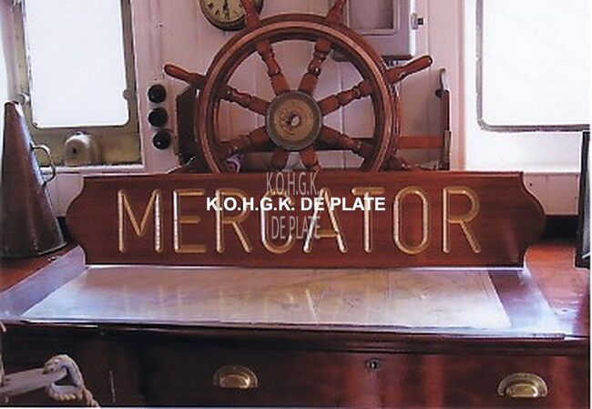 Formaat : 7 x 9,5 cm. - Roer en naambord van de "Mercator"