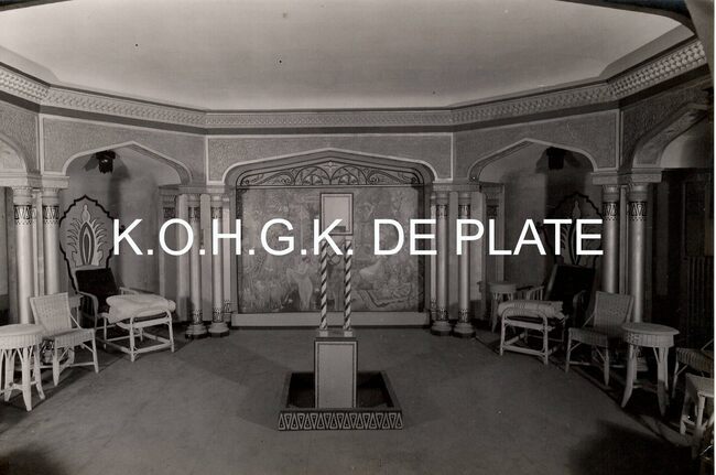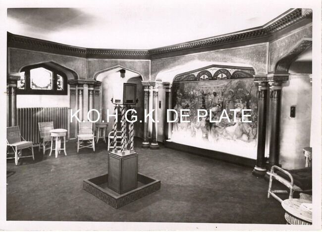 Formaat : 10 x 15 cm. - De rustzaal van de hamman of Turkse baden met een oosters tafereel op de achterwand