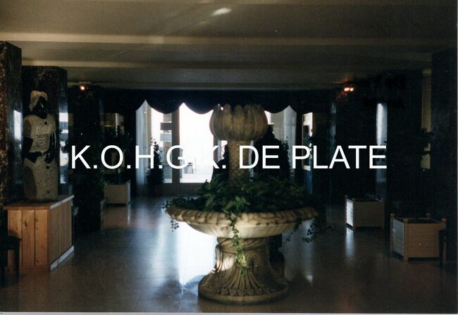 Zwart/wit foto Antony 150430-24. - Formaat : 24 x 30 cm. – Zicht op het interieur van De Bierco. Op bepaalde plaatsen staan er spuugbakken op de grond. Op de muren in de achgergrond, schilderijen van Van Cuyck (op deze…