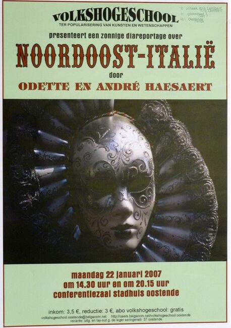 Affiche : Volkshogeschool. Noordoost-Italië. Conferentiezaal stadhuis Oostende. 22/01/2007