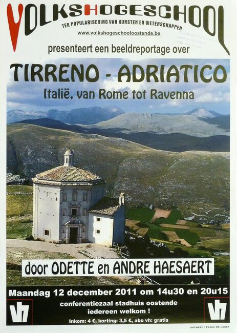 Affiche : Volkshogeschool. Tirreno - Adriatico. Conferentiezaal stadhuis Oostende. 12/12/2011