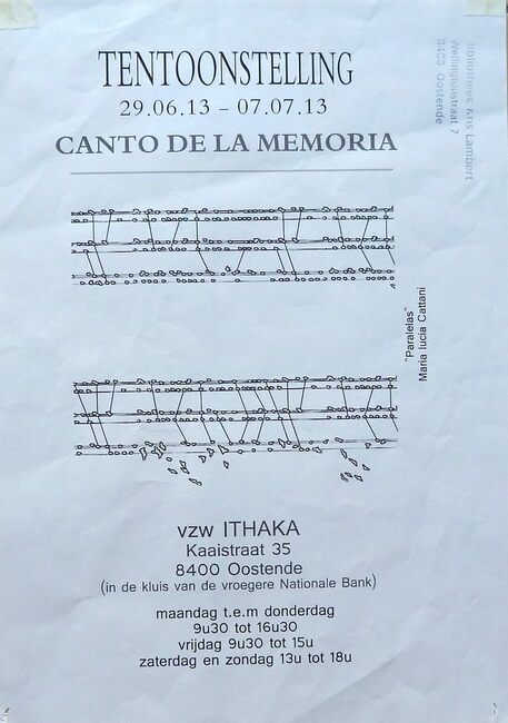 Affiche : Ithaka. Canto de la Memoria. Tentoonstelling. Kaaistraat 35, Oostende. 29/06-07/07/2013