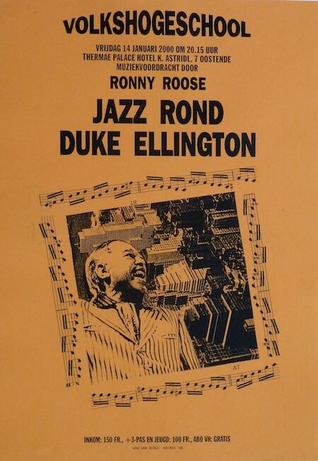 Affiche : Volkshogeschool. Jazz rond Duke Ellington. Thermae Palace Hotel Oostende. 14/01/2000.