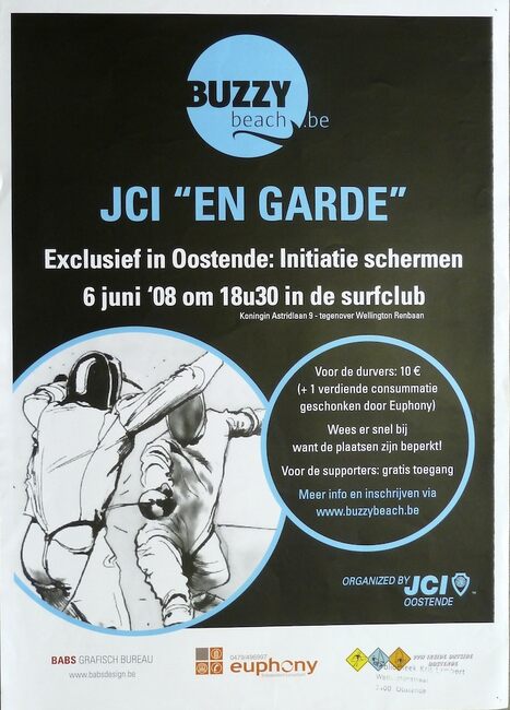 Affiche : BUZZY beach. JCI "En Garde". Surfclub. 6 juni 2008.