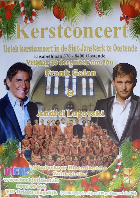 Feestleider Norbert Van der Cruyssen en de Kerstman tussen Mariakerkse kinderen op een Kerstfeest.