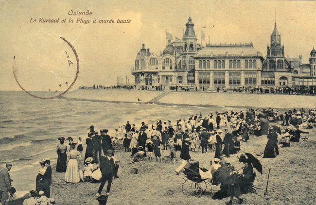 Dr. Trenkler C°. - Ostende -Le Kursaal et la plage à marée haute. - Strandrecreatie bij hoog water op het Groot Strand nabij de westelijke gevel van het derde Kursaal langs de Zeedijk Inventaris 2020/1265 …