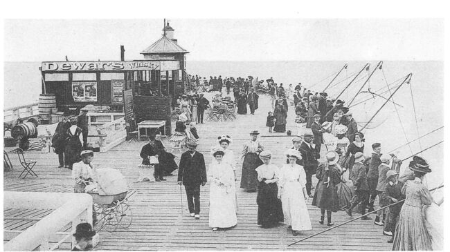 Nels/Thill 13, 40. - Genieten van een wandeling op de Zeedijk, met rechts, de grote hotels en links, strandrecreatie op het Groot Strand en de traditionele badkarren. Op het einde, de westgevel van het derde Kursaal.…