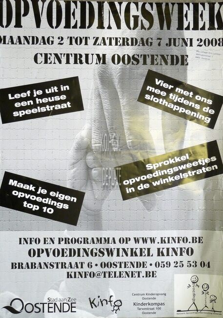 Affiche : Kinfo. "Opvoedingsweek". Centrum Oostende. 02/06 tot 07/06/2008.