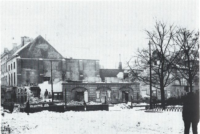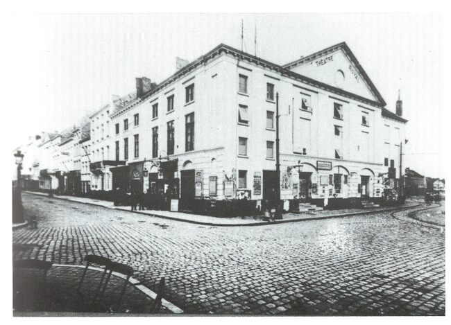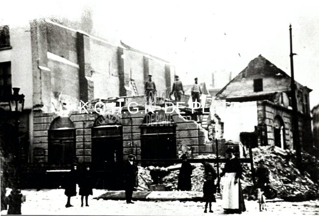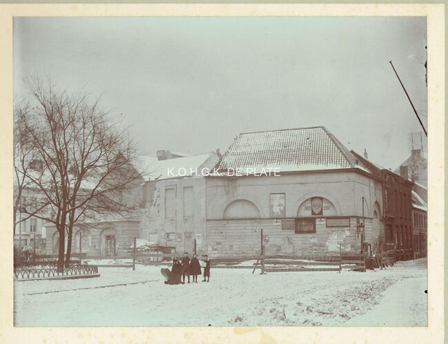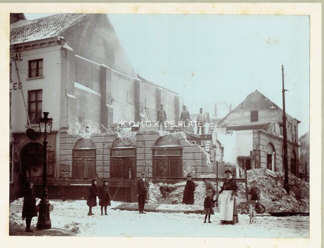 Afdruk. - Formaat : 10 x 14 cm. "De gemeenteraad van 4 december 1906 beslistte de afbraak van de schouwburg. Dit werk werd toegewezen aan de heer Lust voor de som van 860 fr. Enkele dagen nadien gestart, werd de…