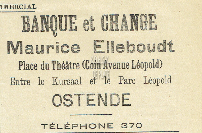 Op de voorzijde : rondom boven THEATRE ROYALE D’OSTENDE, horizontaal boven DIRECTION…