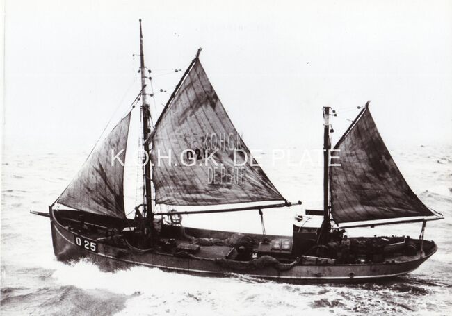 Zwart/wit foto Antony 311028-1. - Formaat : 23,5 cx 29,5 cm. - De O.25 "Koning Albert" was een stalen motortreiler met een Kromhout motor. Bouwjaar 1924. Reder was Henri Lambregt. Dit schip is niet langer in de…