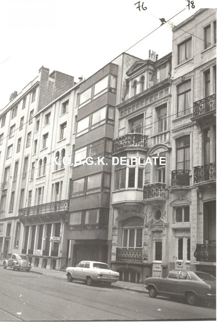 Formaat : 12 x 8 cm. Koningsstraat nrs. 70 tot 78, richting Kemmelbergstraat. Nr. 76 is een eclectisch burgerhuis (2e van rechts)