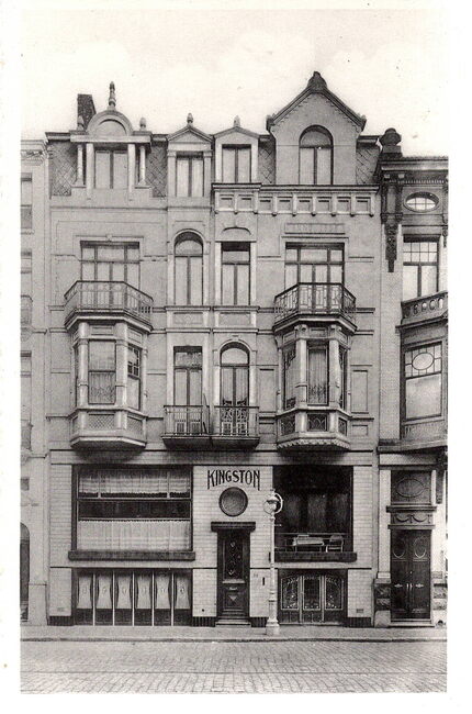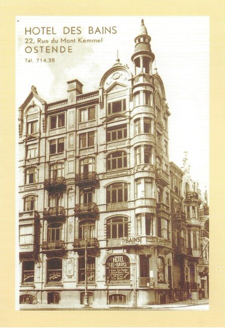 Formaat : 12 x 8 cm. De Koningsstraat richting Marie-Joséplein. Het vierde gebouw van rechts is hotel "Les Etoiles"