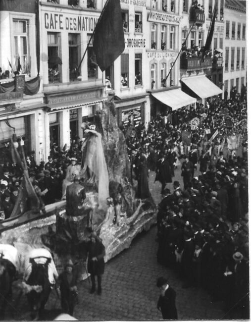12 foto's formaat : 10 x 8 cm. - Met 12 negatieven in omslag en 12 vergrotingen, formaat : 29 x 21 cm. - Foto's : (3) Praalwagen van de vereniging" De Oude Wasschers" met als thema "L'Union…
