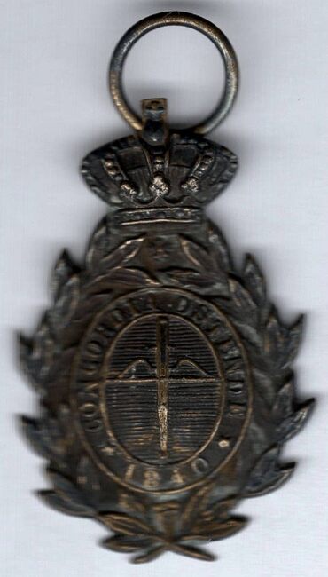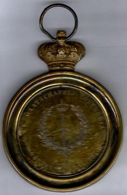 Op de voorzijde : rondom boven MAATSCHAPPIJ CONCORDIA, centraal 23 MEY / ↣↢ / 1852 / Th…