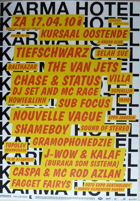 Affiche : Karma Hotel. Kursaal Oostende + Krush Club. Zaterdag 17.04.2010