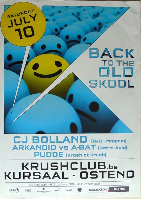 Formaat : 70 x 50 cm. DJ Line-up: CJ BOLLAND (R&S - Magnus), Arkanoid vs A-BAT (retro acid), PUDDE (Krash at Krush)