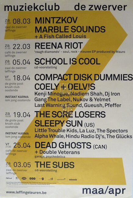 Affiche : Muziekclub De Zwerver. De Grote Post Krush Club Oostende. 18 en 19 april .... (?)