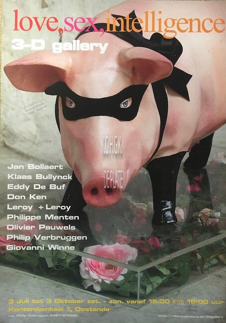 Affiche : Jan Bollaert, Klaas Bultynck, Eddy De Buf, ... Love, sex, intelligence. 3-D gallery. Van 3 juli tot 3 oktober, ....(?)